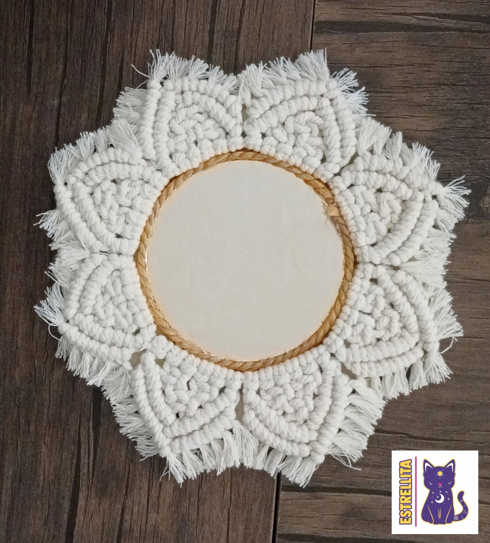 Decoración con Intención, añade un toque de espiritualidad, armonía y equilibrio a tus espacios. La palabra mandala proviene del sánscrito y significa “círculo”. Hermosa decoración de pared, nuestros mandalas incluyen 8 pétalos, por lo que suman una energía de prosperidad en la sección en donde son colocados, están elaborados con materiales naturales a base de algodón o henequén en color blanco, amarillo o dorado; la energía del color blanco está asociado a la pureza, paz, integridad, energía positiva. Su diseño incluye un espejo.