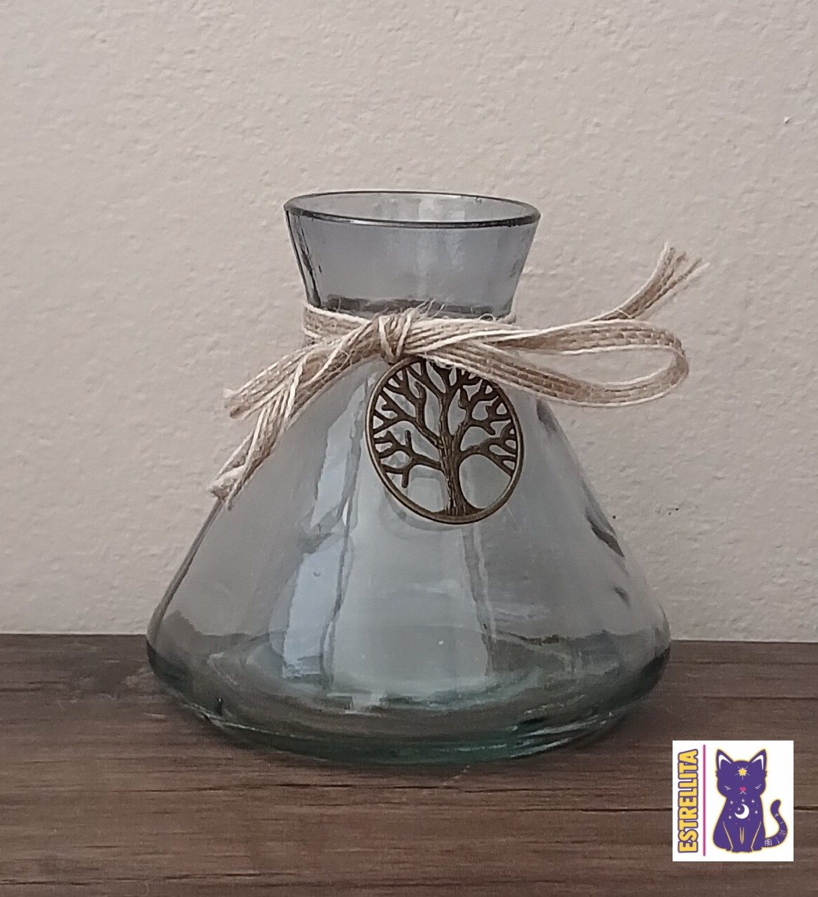Esta pieza de vidrio en color verde incluye un dije del Árbol de la Vida, el cual es un símbolo con profundo significado. Las raíces representan nuestro origen y la familia; mientras que las ramas hablan de la evolución, apertura al mundo y el futuro. Suma esta energía de equilibrio a tus espacios. Ideal para lucir flores, ramas secas.